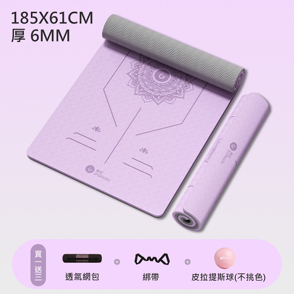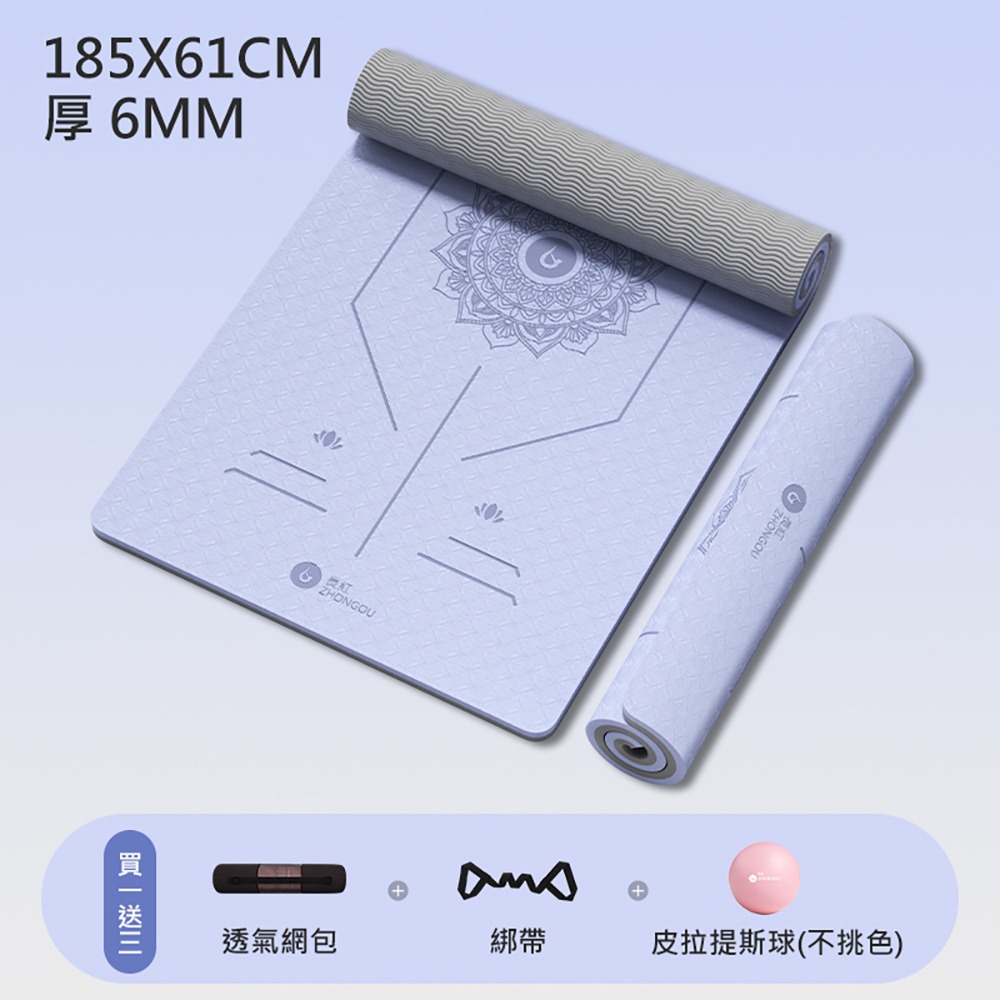 【預購】【TPE加厚款 買1送3】6MM厚 185×61CM 正位線 雙色瑜珈墊 XFE-TP68 (贈綁帶、背袋、直徑25公分皮拉提斯球)