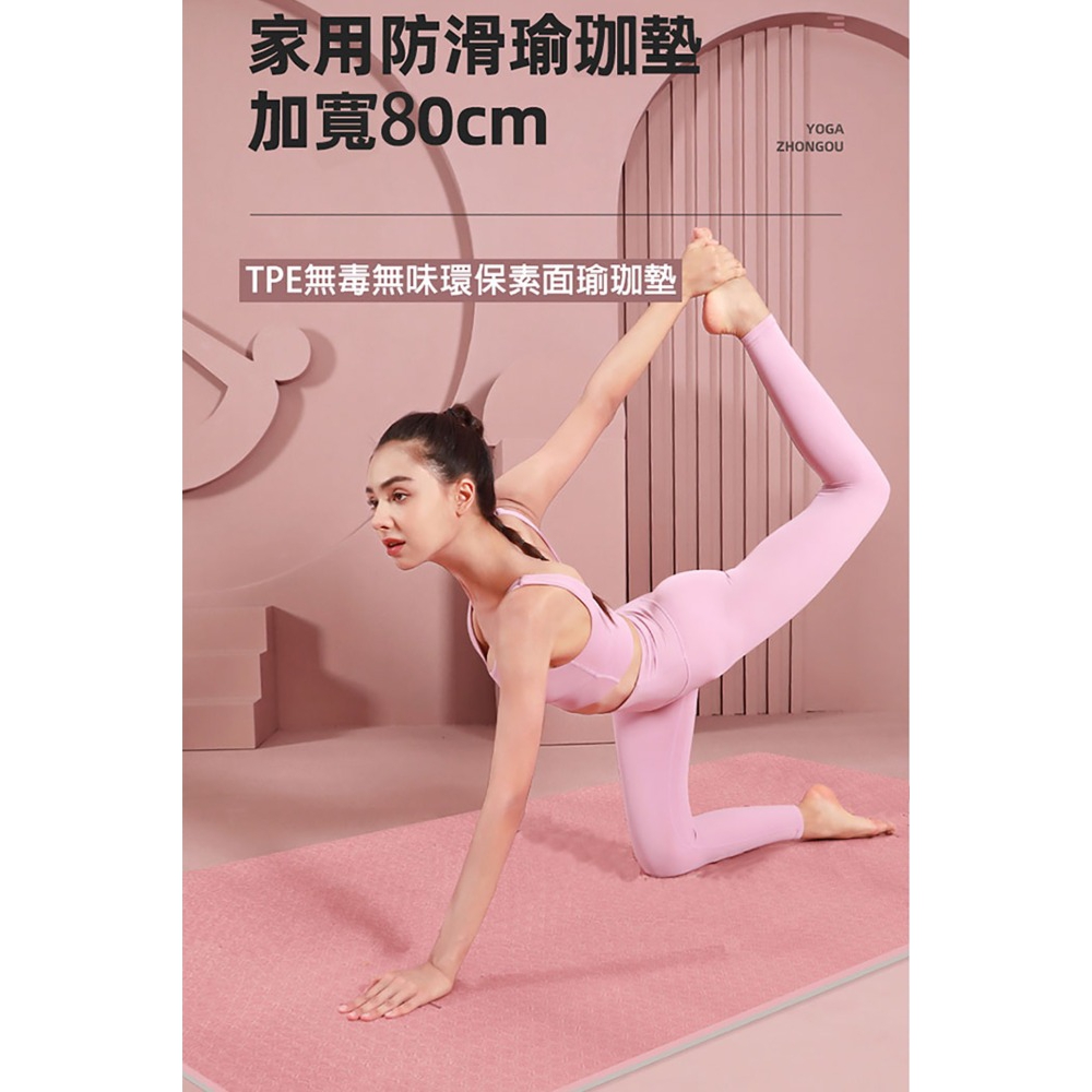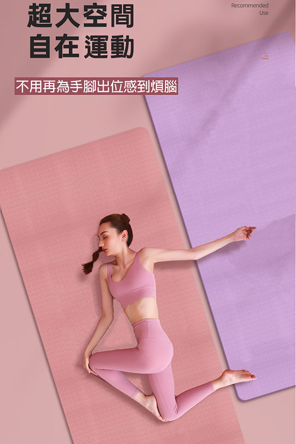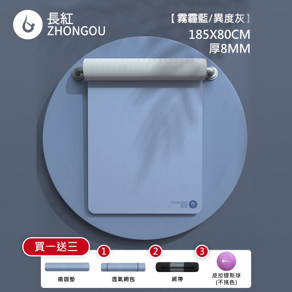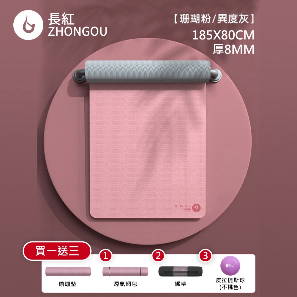 【 TPE加厚款 買1送3】8MM厚 185×80CM 無正位線 雙色瑜珈墊 XFE-TP88N (贈綁帶、背袋、直徑25公分皮拉提斯球)