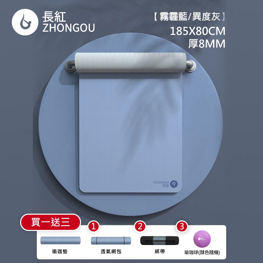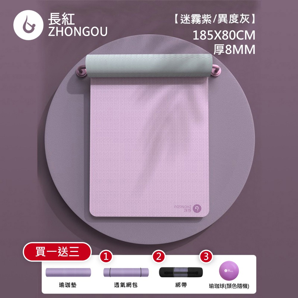 【 TPE加厚款 買1送3】8MM厚 185×80CM 無正位線 雙色瑜珈墊 XFE-TP88N
