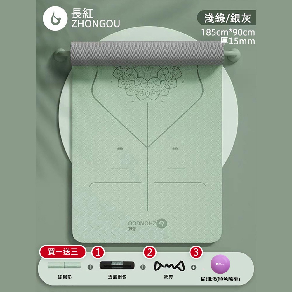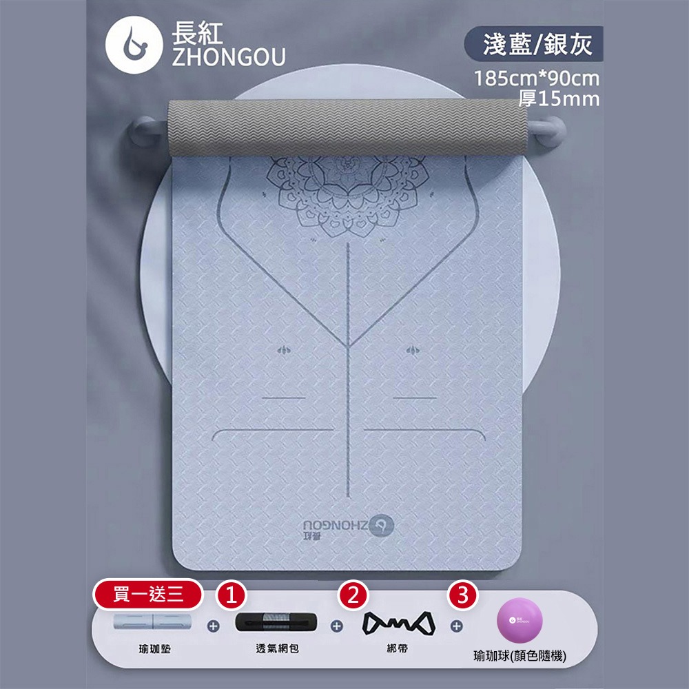【 TPE加厚款 買1送3】15MM厚 185×90CM 防滑加厚 正位線雙色瑜珈墊 XFE-TP189015
