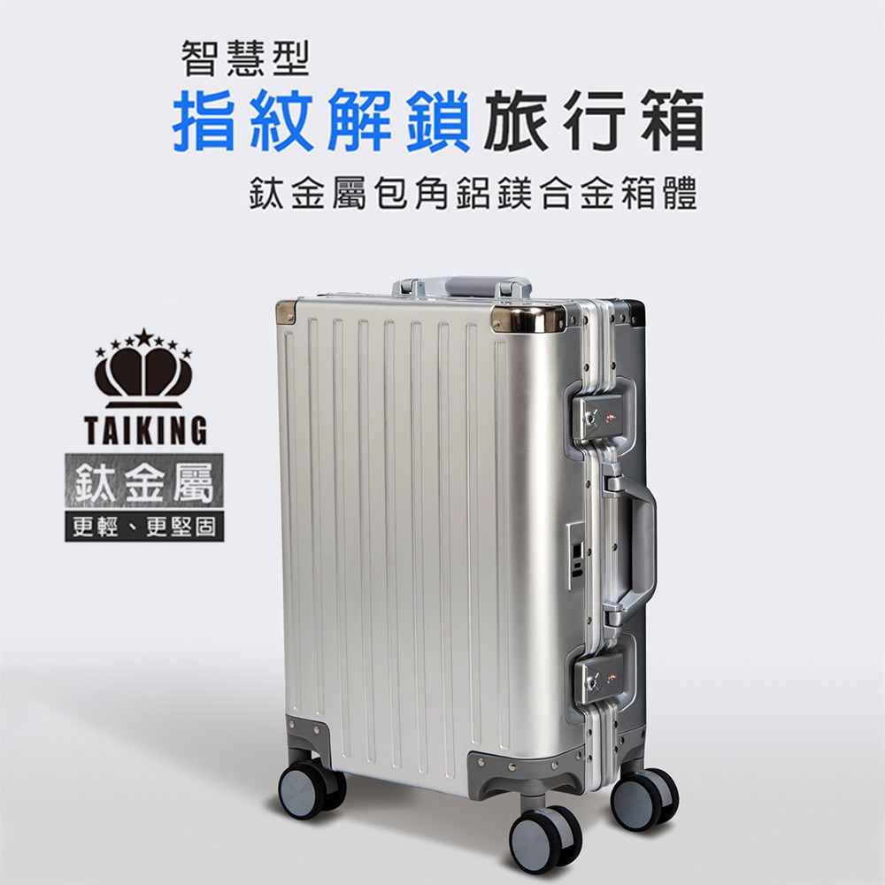 【買1送5】26吋 德國TAIKING鈦金屬包角/鋁鎂合金/智能指紋解鎖行李箱/旅行箱