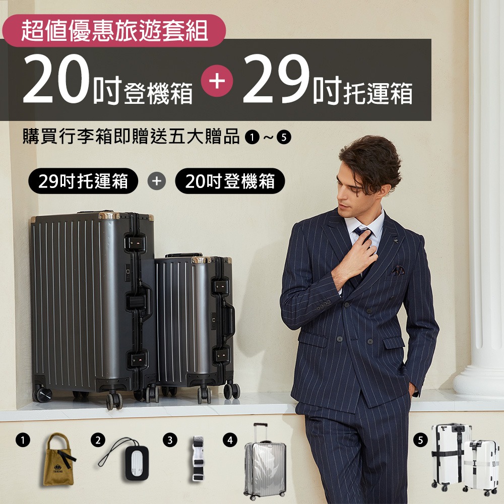【送馬年紫南宮錢母】★買2送10超值組合★20吋+29吋 德國TAIKING鈦金屬包角/鋁鎂合金/智能指紋解鎖行李箱/旅行箱