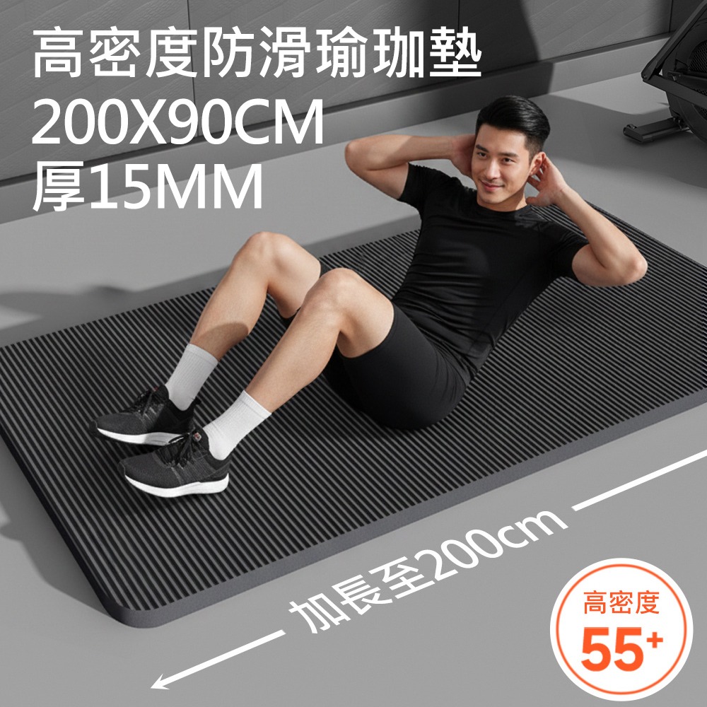 【NBR加厚款】 高密度防滑瑜珈墊 15MM厚 200x90CM 瑜珈墊/防滑墊/地墊209015