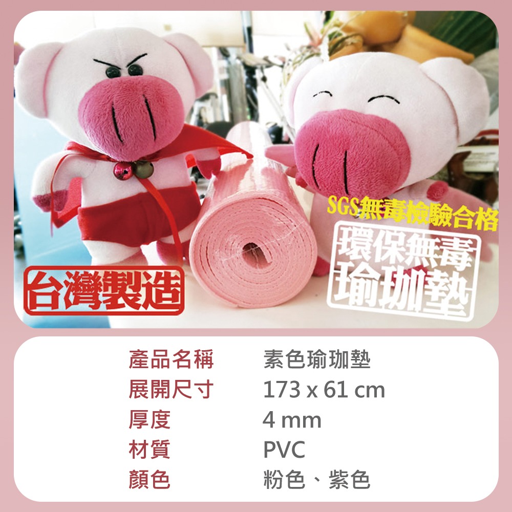 【PVC台灣製造】4MM厚 173×61CM 素色瑜珈墊/防滑墊/地墊 SGS無毒合格檢驗通過 環保無毒PVC
